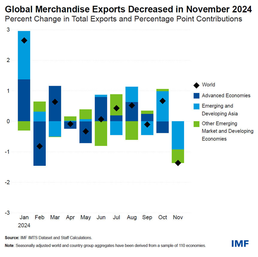 Global Merchandise Exports Decrease in November 2024 Driven by Emerging and Developing Asia